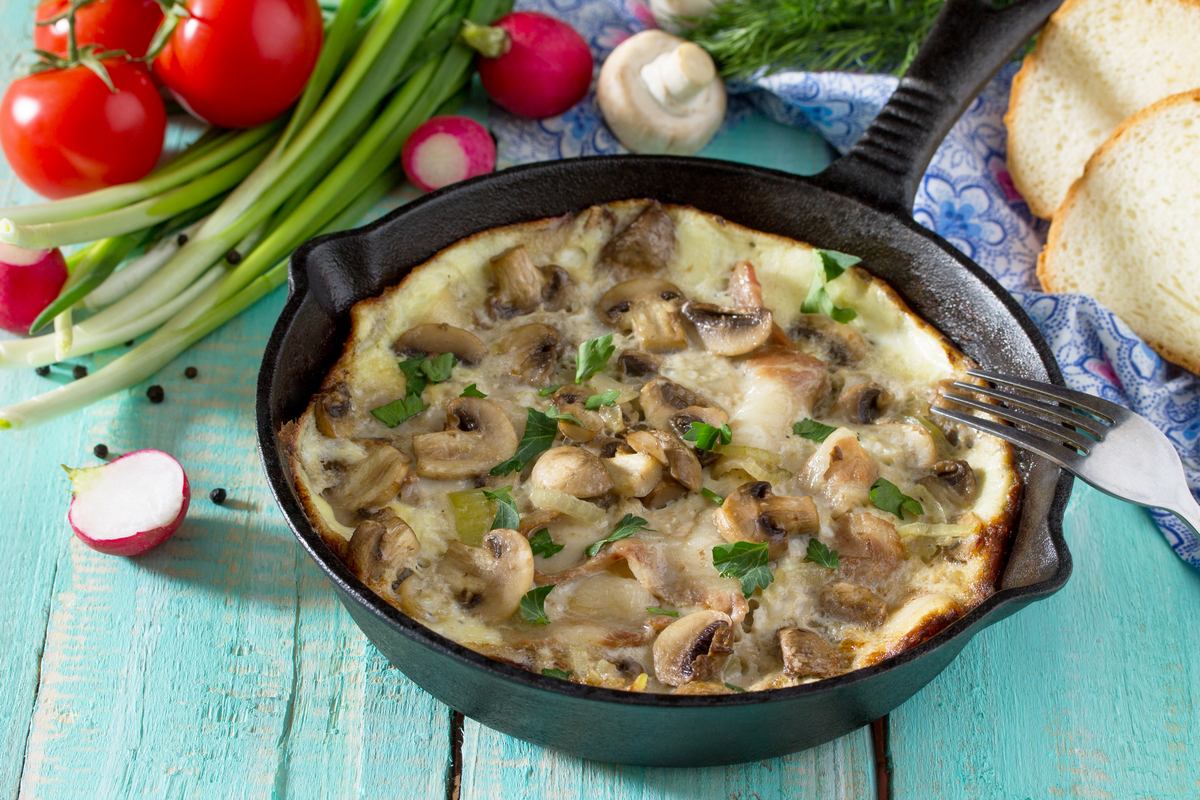 Αφράτη φριτάτα με γήινη γεύση μανιταριών και έντονη νοστιμιά από το κασκαβάλ