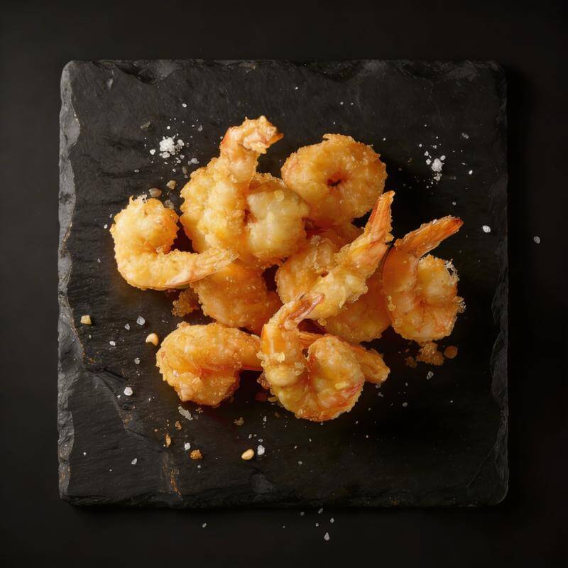 - Βουτάμε τις γαρίδες στο κουρκούτι και τις τηγανίζουμε για περίπου 2–3 λεπτά μέχρι να αποκτήσουν χρυσαφένιο και τραγανό χρώμα