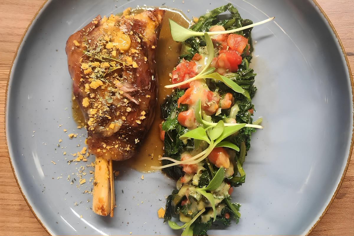 Κότσι ορεινού Ηπείρου γάστρας με χόρτα